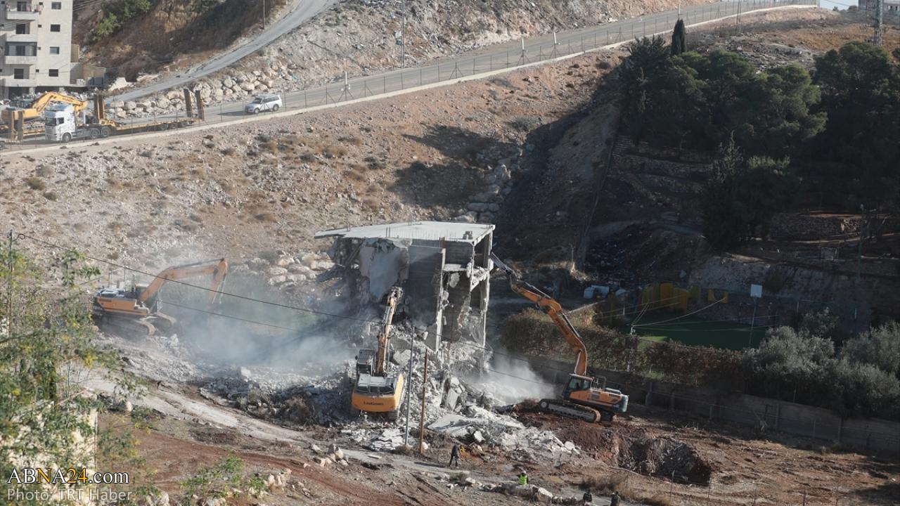 据圣裔世界大会通讯社(阿布那)报道,犹太复国主义政权侵略军队以非法建筑为借口摧毁了东耶路撒冷“Wadi al-Hamous”地区的两座巴勒斯坦人房屋。 两座三层和四层的巴勒斯坦建筑在这次事件中被毁。